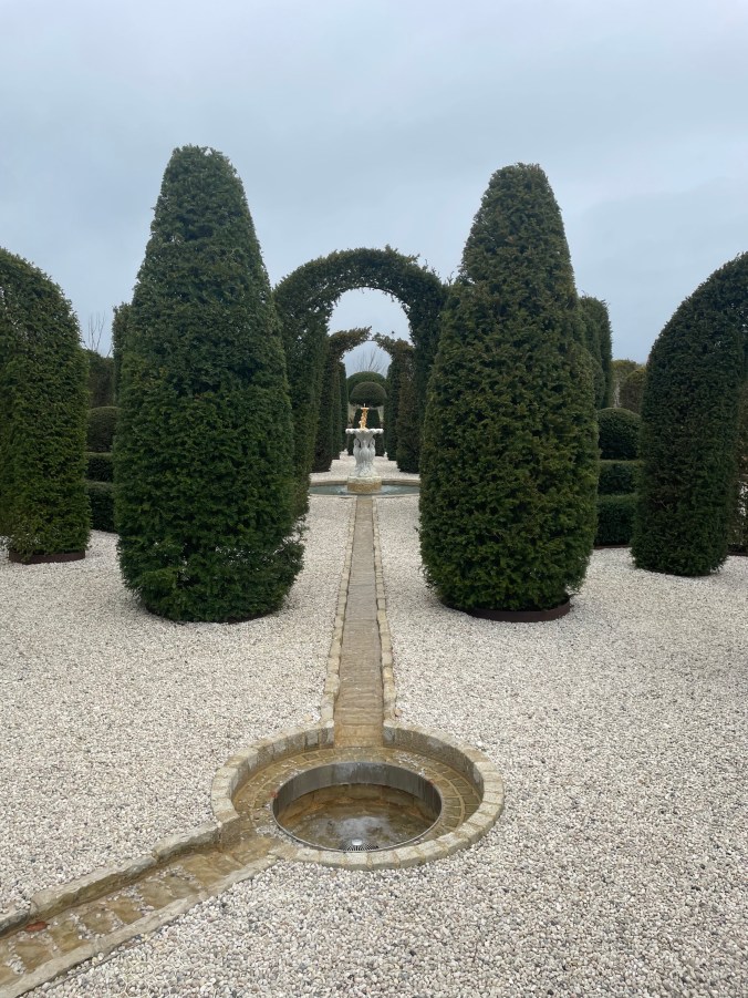 We stayed for lunch in the main restaurant and that too was, as on previous visits, very good. We had a great table with a view over the ‘Parabola’. Beyond that we could see the vegetable and fruit garden, the topiary towards the hotel and then, even further on, the orchards on the slopes to the south west. Next time, we will come when more of the planting is in flower and the weather is more conducive to a longer excursion around the property, but we enjoyed the first of our membership visits very much.