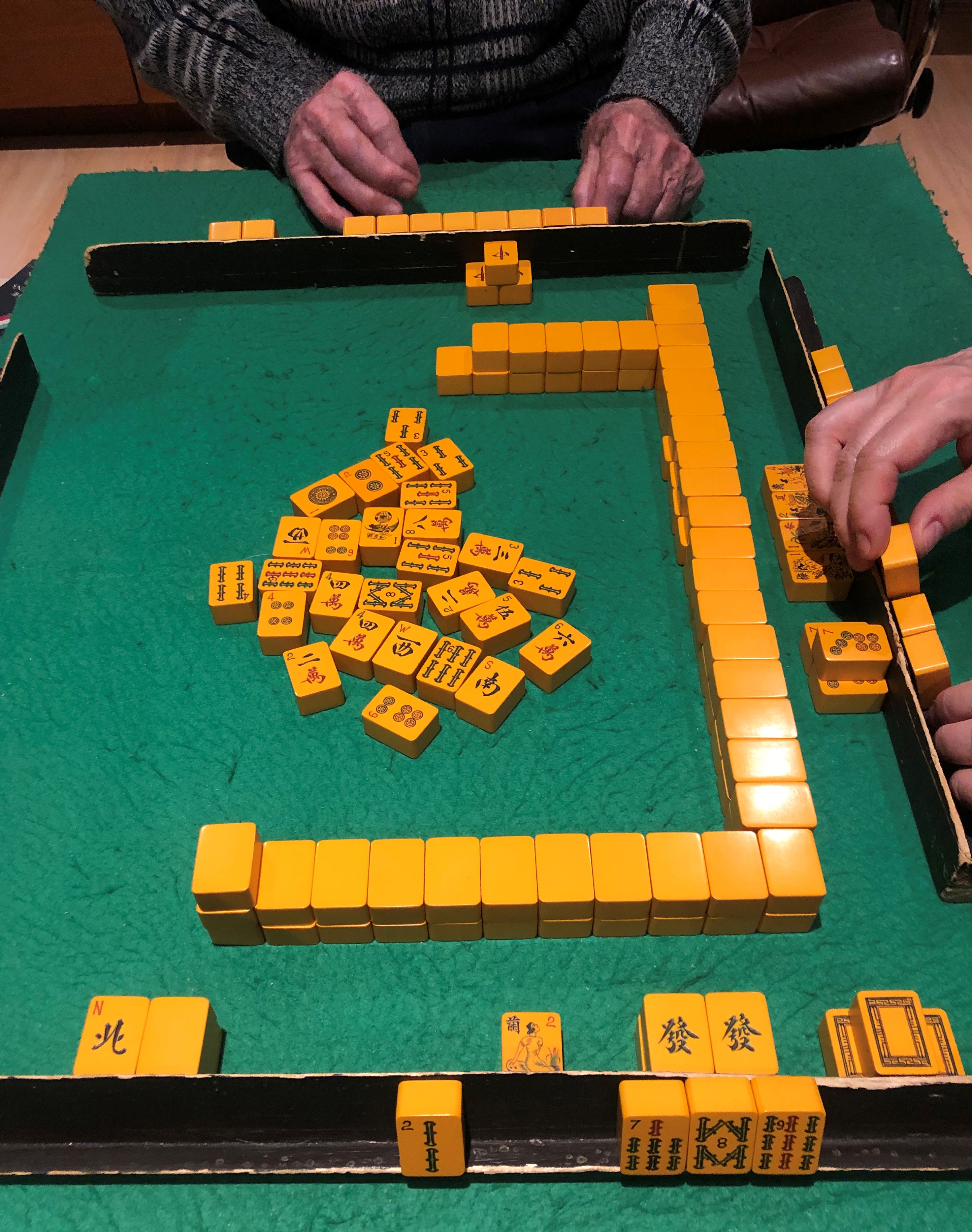 The weather in Nottingham was kind enough to enable some pleasant local walks but the highlight of my stay – apart perhaps from our joint birthday meal out at a local restaurant – was an evening playing Mahjong.