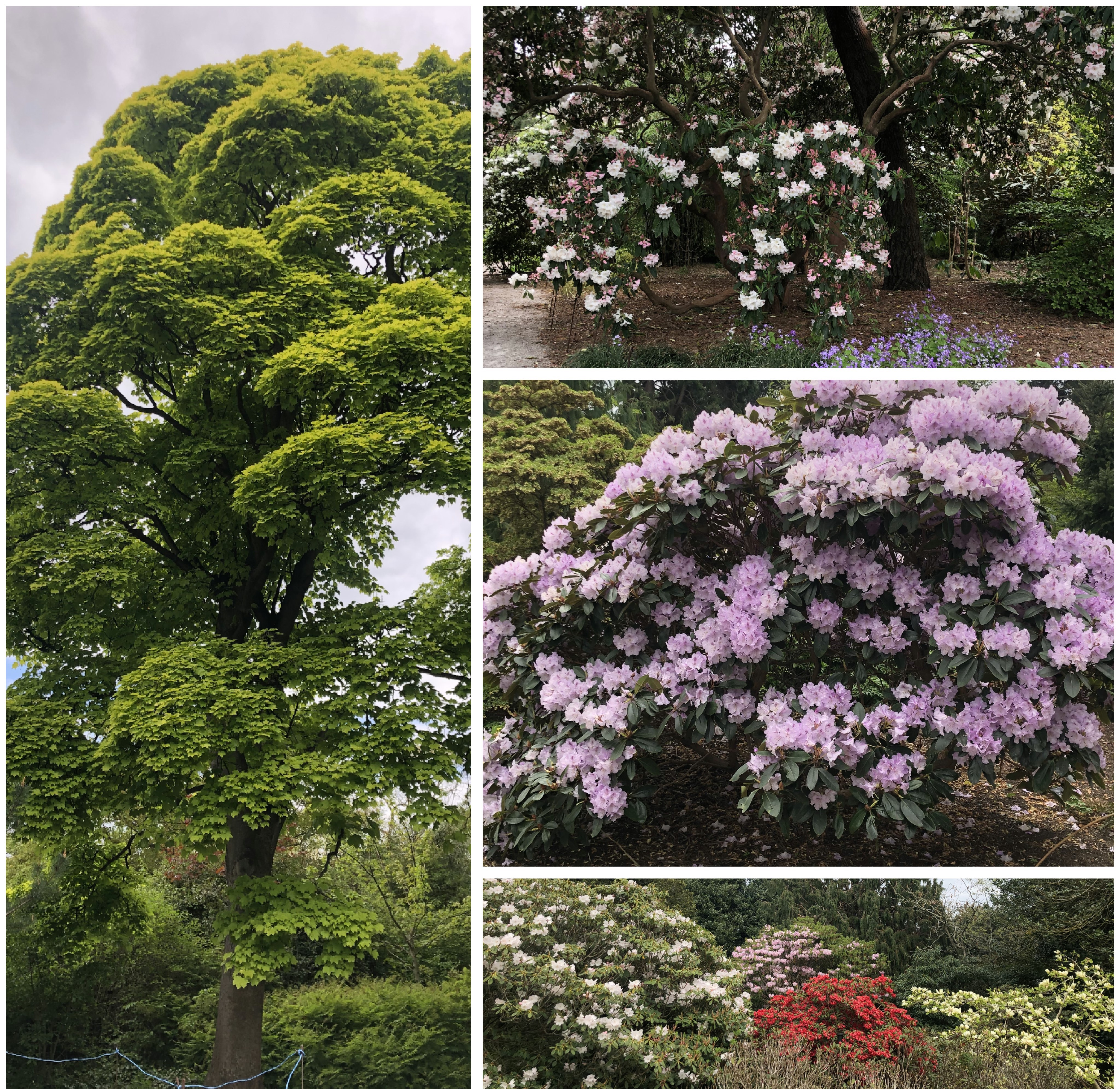 It is at this time of the year that one can see that, indeed, the Botanical Garden in Edinburgh has the largest collection of rhododendrons in the world. There is such a variety on show and now is peak flowering time. A small but interesting exhibition in Inverleith House set out the characteristics of rhododendrons, their world distribution, their history in gardening, and the challenges to indigenous plant-life some varieties have caused as they have escaped into the wilds of the northern hemisphere, including Scotland.