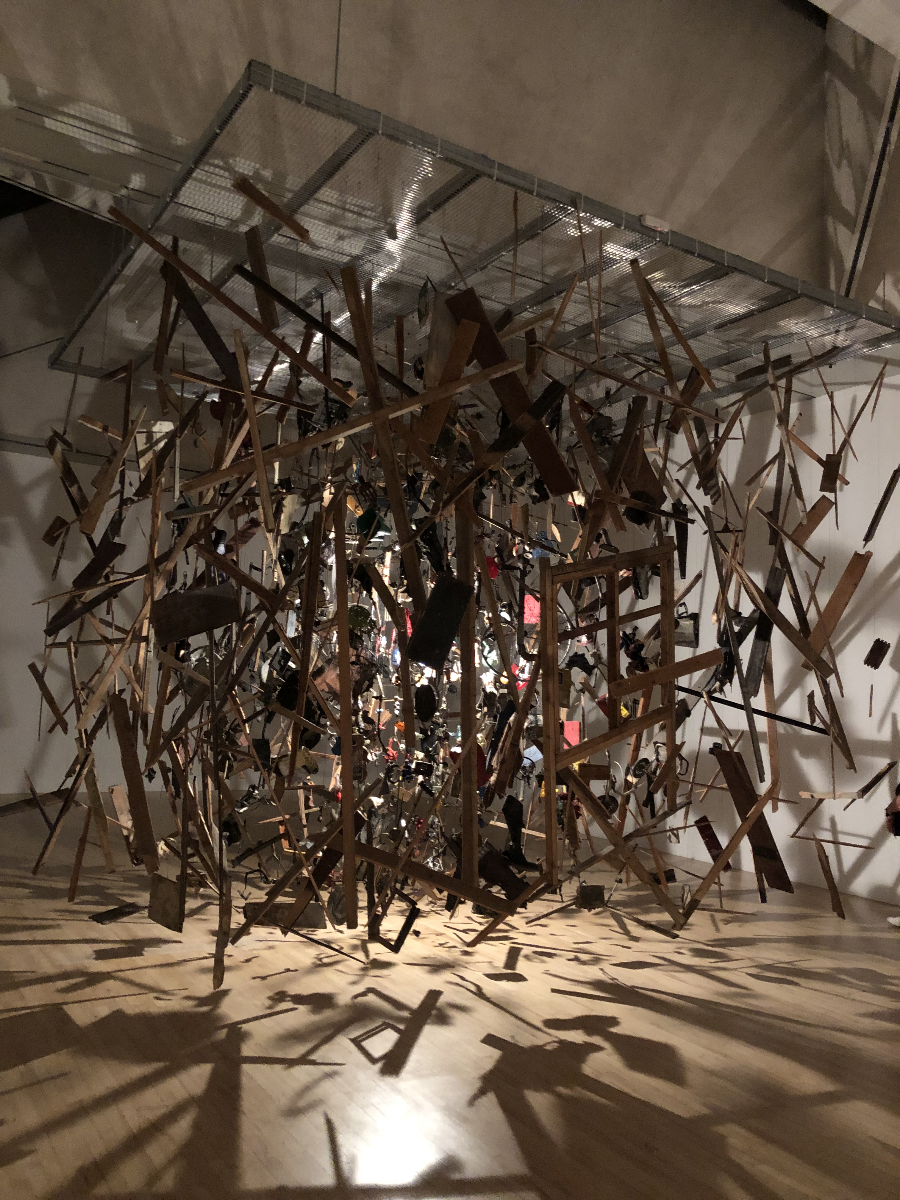 ‘Cold Dark Matter: An Exploded View’ was the centrepiece of the exhibition and was an arresting sight. As the accompanying blurb pointed out, it both looked like a moment of explosion but also, as one stood back, felt like an implosion; like a moment in one of those films of something exploding put into reverse.