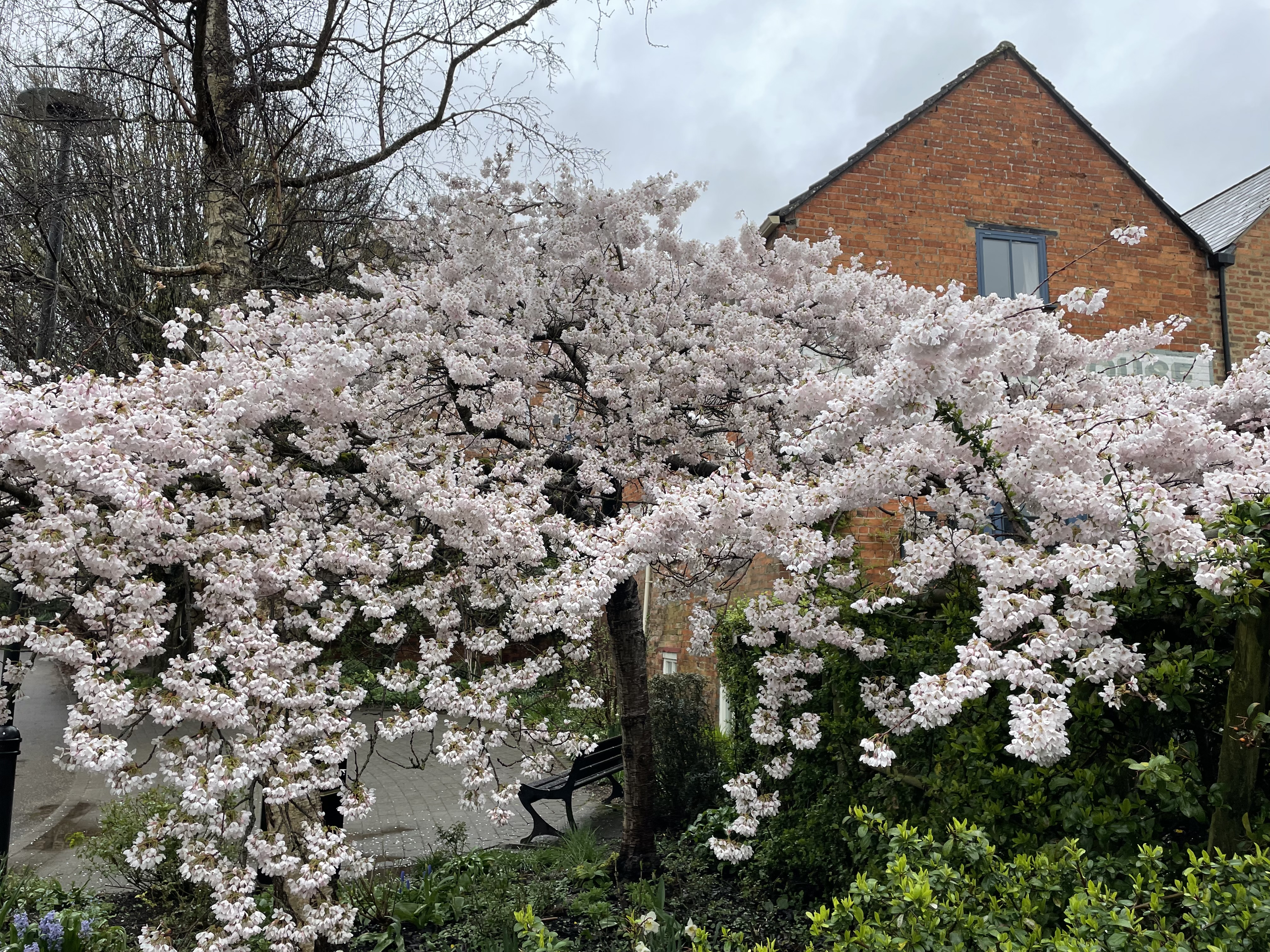 Spring is definitely with us after a very wet March.  We have April showers – it even snowed for a minute or two earlier today – and spring flowers.  The cherry blossom is out and there are lambs in the fields.