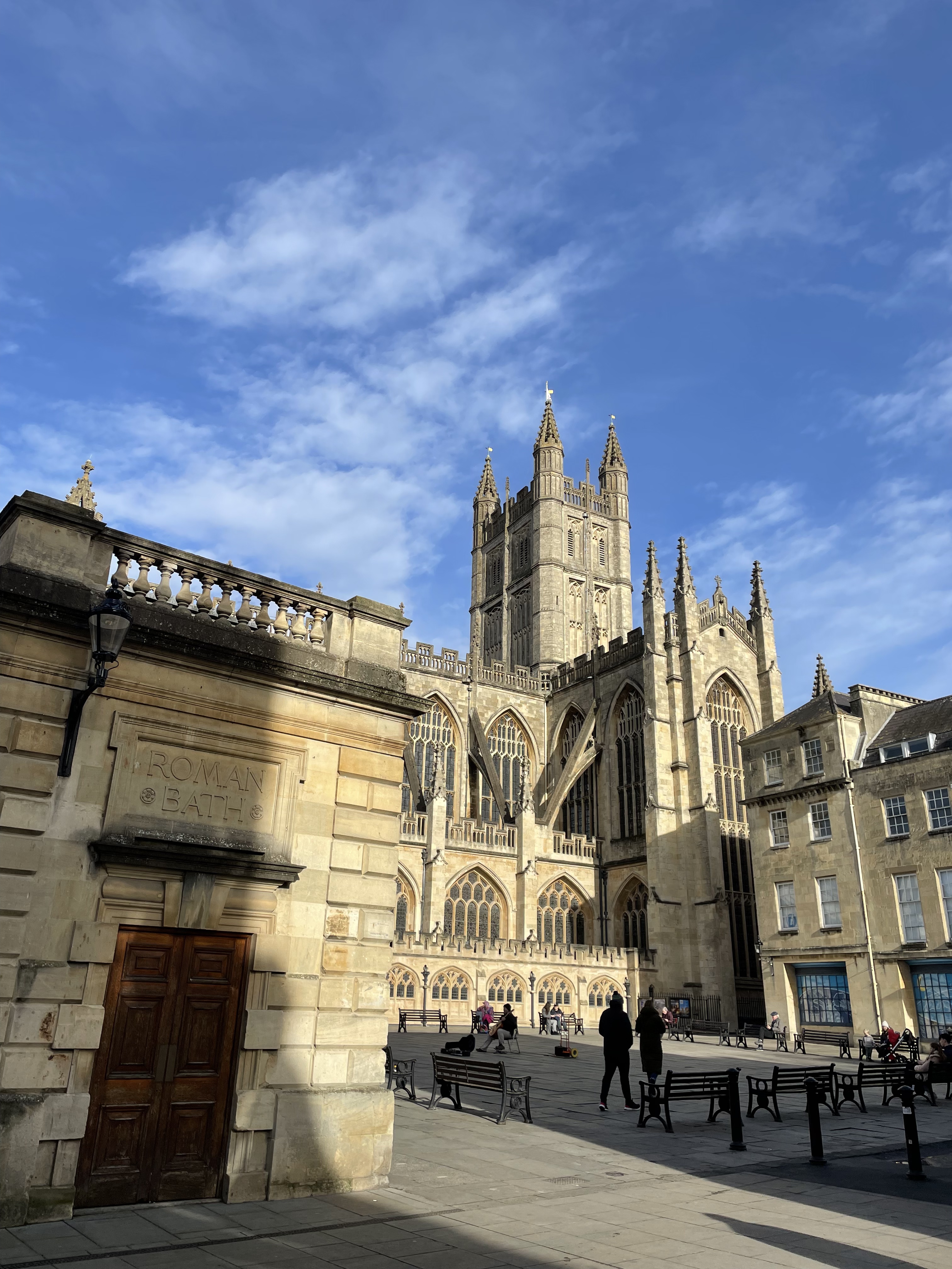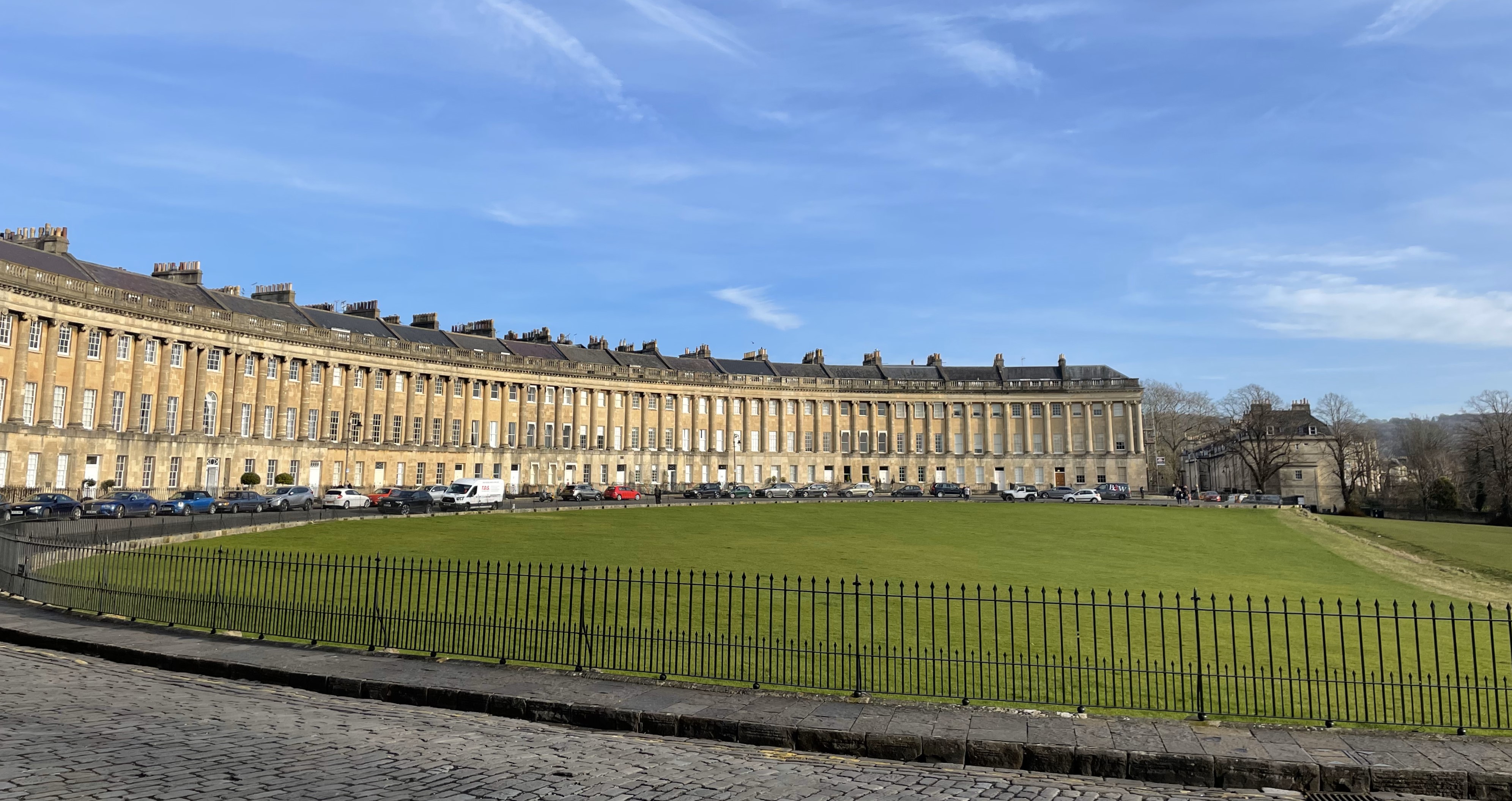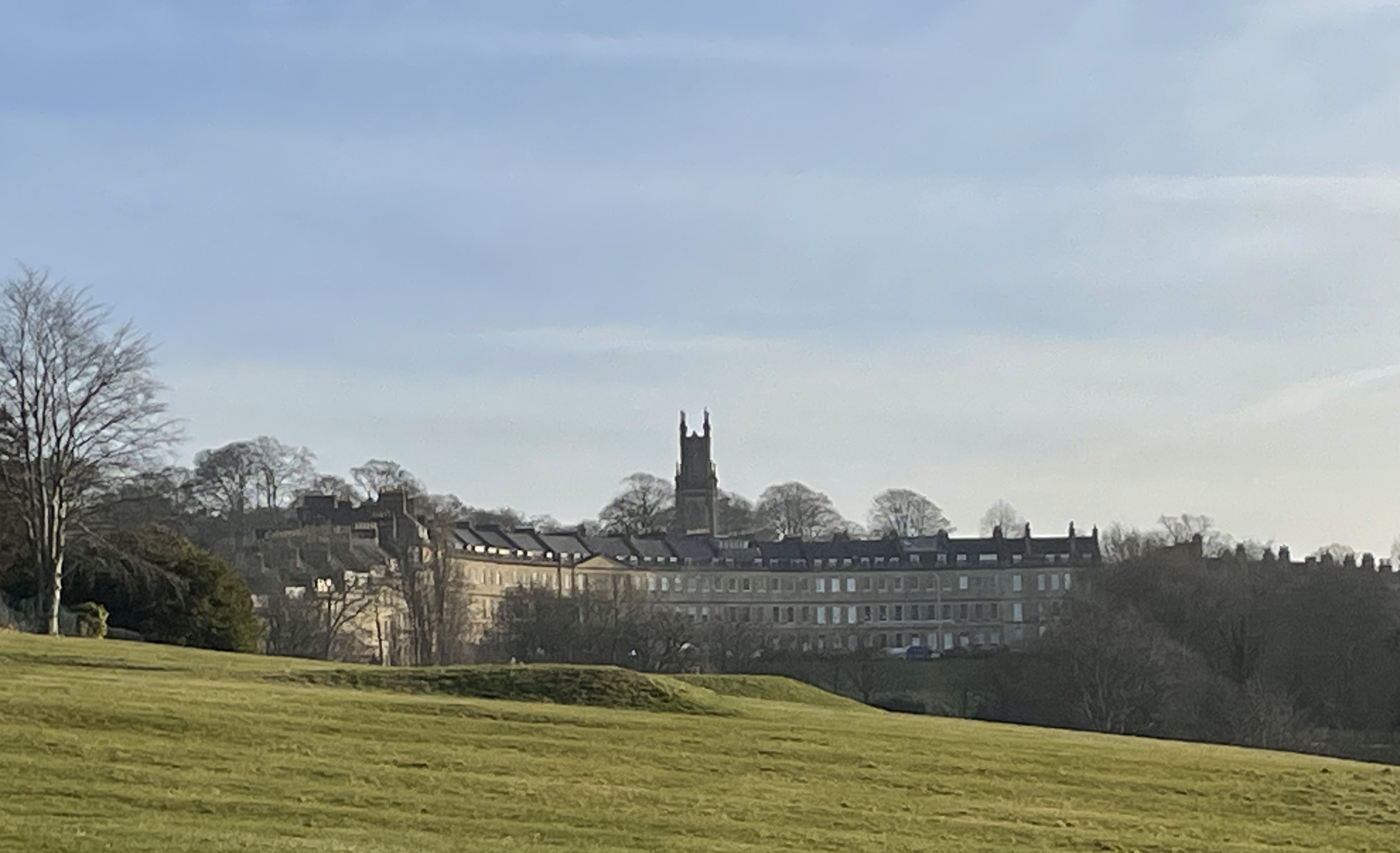 Jane always seems to find a treasured, discreet parking spot on Sion Hill. The walk from there to the centre of town takes us past takes us past Georgian terraces and crescents and through big open grassy slopes with broad vistas. It is an early treat on our visits, especially on a sunny day. Then in the city centre, there are the impressive squares and circuses of intact Georgian houses, the river and its bridges, and the Roman Baths and Cathedral, all clad in wonderful local stone.
