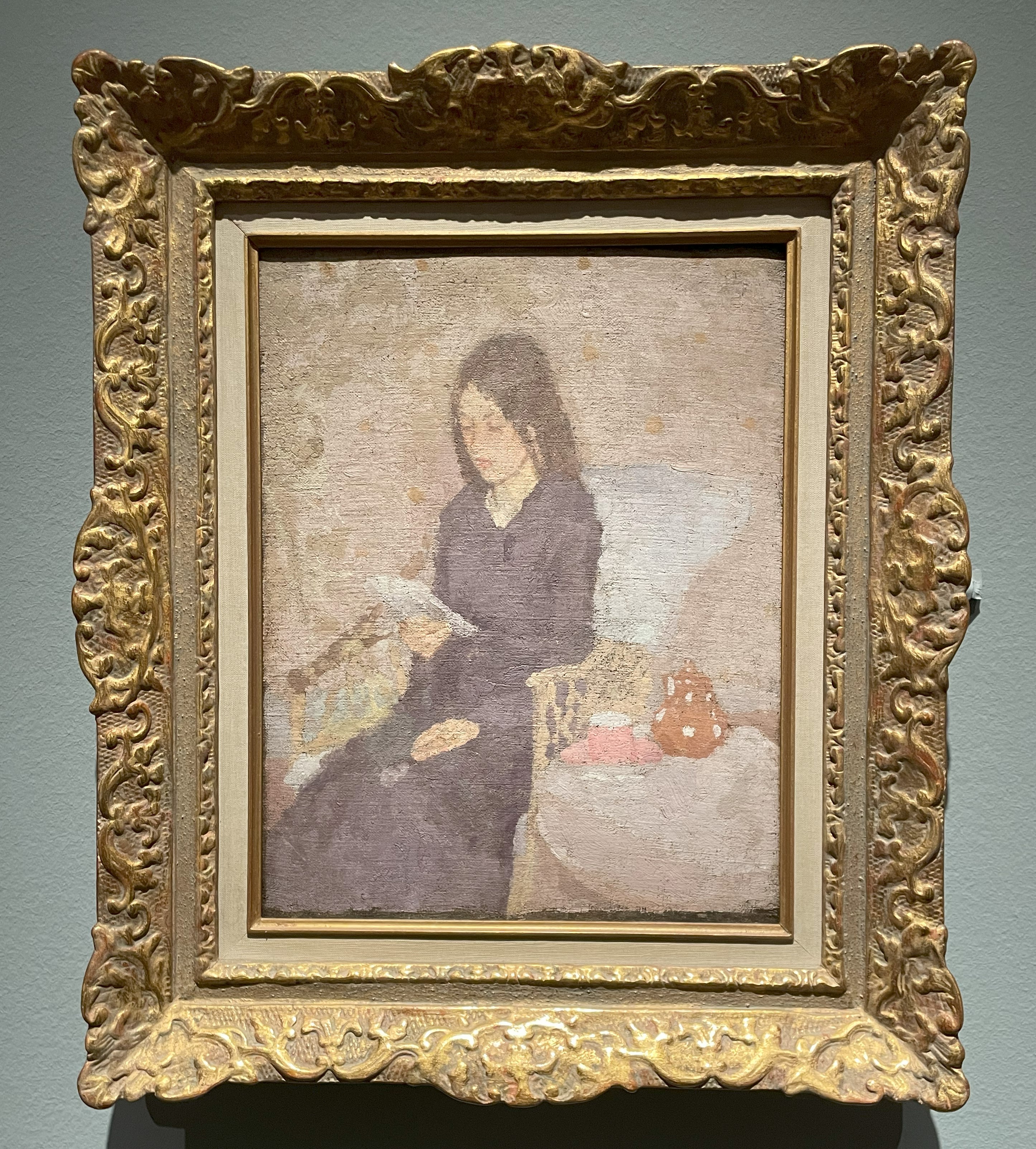 The exhibition proved to be small but interesting. Gwen John was clearly a formidable and influential woman. It seems that her popularity has grown since her death but in life she mixed with, modelled for and inspired a wide range of other artists and produced attractive and innovative paintings. I particularly liked the set of paintings on show called the ‘Convalescent Series’. These are portraits with muted colours with an unusual surface texture apparently produced by the oil paint soaking into a chalky glue mix which caused bubbles and then small perforations in the finish.