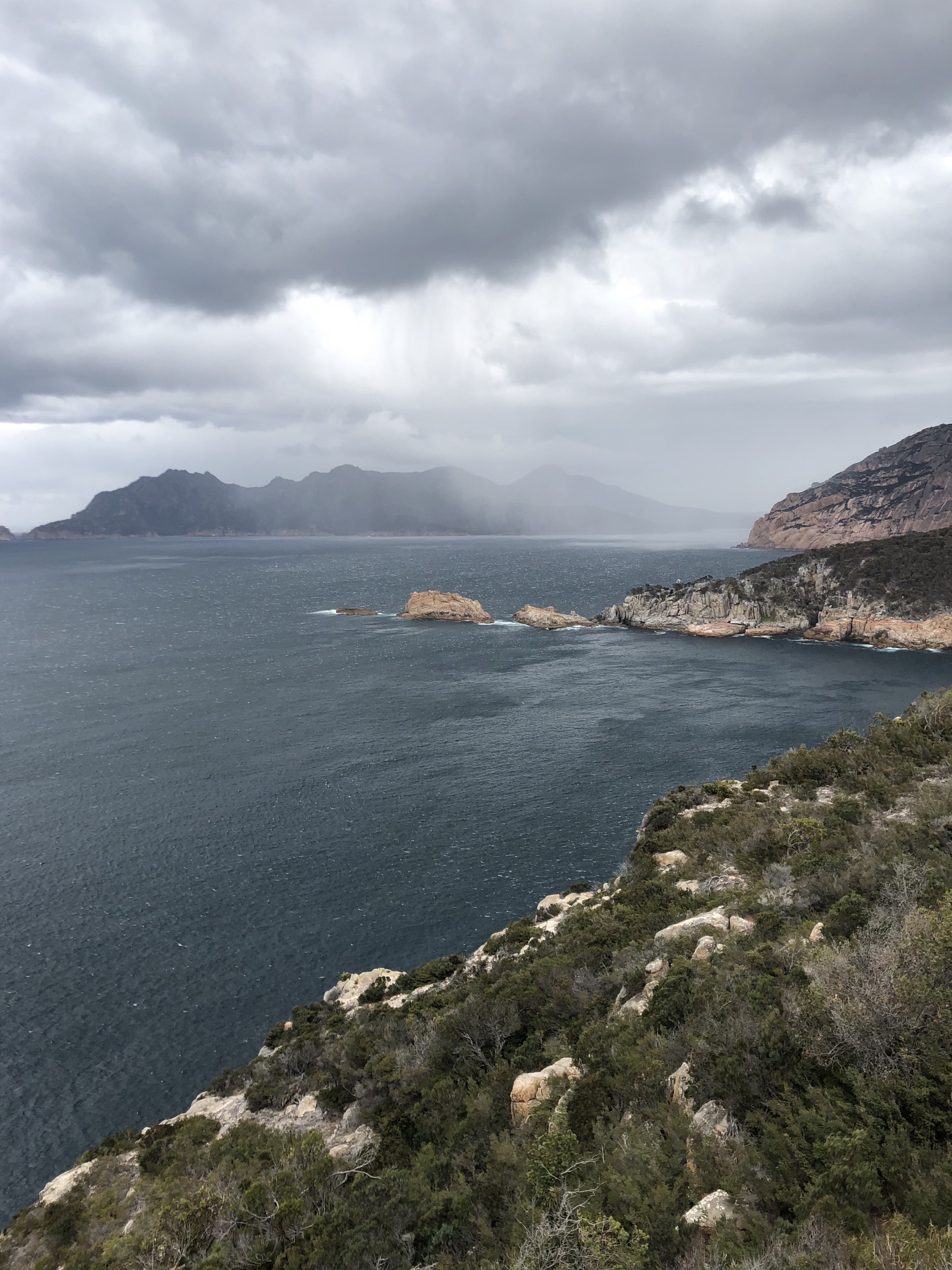 Wineglass Bay and Mount Mayson from Wineglass Bay Lookout At Sunrise